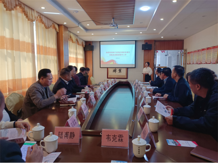 南宁市武鸣区政府领导班子为进一步加快推进武鸣城区林产品产业高质量发展,南宁市武鸣区人民政府党组成员、南宁市伊岭工业发展管理委员会党工委副书记、常务副主任黄海珍,南宁市武鸣区投促局局长韦翔智等一行15人,于2021年11月9日上午到贵港市港南区江南工业园kaiyun开云网页版学习考察,业成集团董事长杨文友热情陪同。